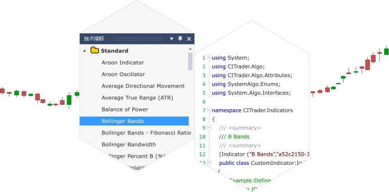 交易系统策略包括图表上潜在的进出点位。您可以在100多个模板中进行选择并根据您的要求自由设定,或者在我们的Development Studio中通过C语言、NET和Visual
